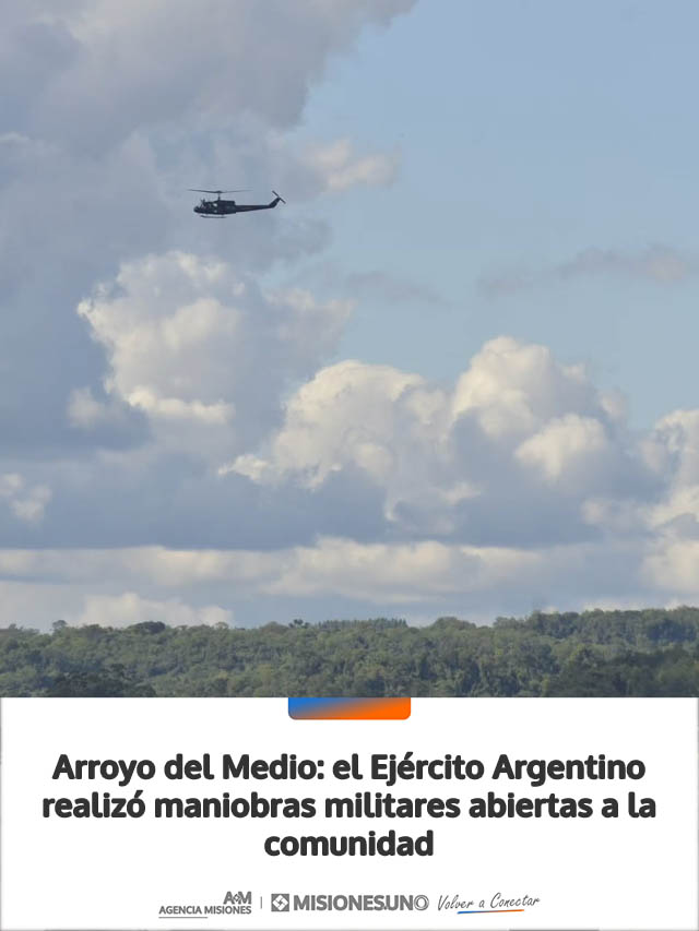 AGENCIA MISIONES.UNO | En una jornada que combinó despliegue operativo y cercanía con la población, el Regimiento de Infantería de Monte 30 llevó adelante maniobras militares en Arroyo del Medio, con participación de tropas y helicópteros.