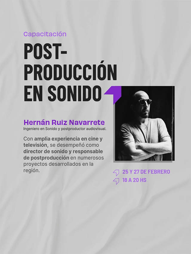 El cronograma comenzará el 23 de febrero con charlas sobre el proceso creativo desde el color y el sonido. Los talleres prácticos de postproducción en color se desarrollarán los días 24 y 26 de febrero, mientras que los de postproducción de sonido tendrán lugar el 25 y 27 de febrero, todos en modalidad virtual.